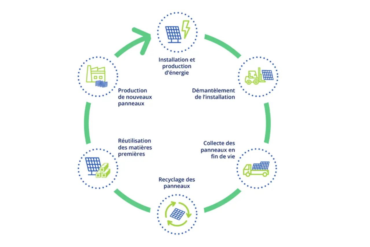 La collecte et le recyclage des panneaux photovoltaïques font l’objet d’une obligation réglementaire depuis 2002. Ils sont encadrés par la directive européenne sur les déchets d’équipements électriques et électroniques (DEEE). En France, l’éco-organisme SOREN est en charge de cette filière.